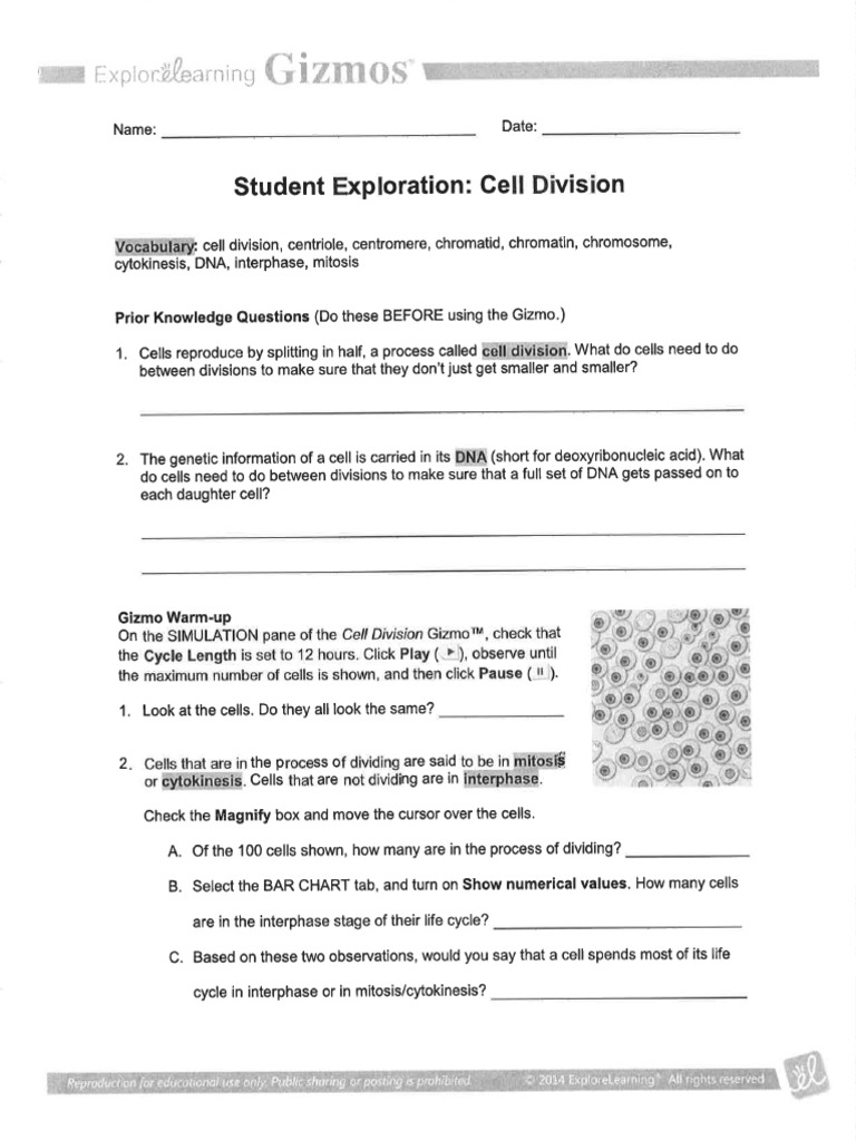 Cells reproduce by splitting in half, a process called cell division. We come up with the money for gizmo cell division answer key and numerous ebook collections from fictions to scientific research in any way. Projects craig johnson walt longmire cqf exam answer cpr lines american red cross craftsman 5 22 snowblower cpa exam for dummies cracking the intercollegiate general surgery frcs viva a revision 1st edition cracking the sales management code the secrets to measuring and. On the simulation pane of the cell division gizmo™, check that the cycle length is set to 12 hours. ebooks cell structure gizmo answers the cell structure gizmo™ allows you to look at typical animal and plant cells under a microscope.
